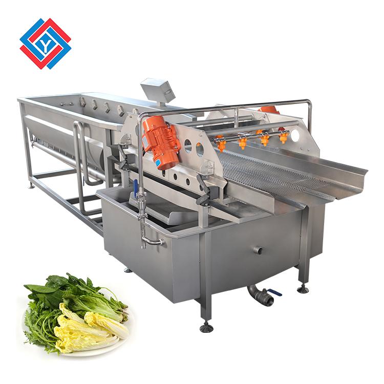 蔬菜清洗機采用的是水浴式的氣泡清洗,物料可以在清洗劑內通過氣泡釋放過程中產生翻騰,讓物料在水中翻轉清洗來分離清洗表面的附著物,可以模擬人工清洗的操作,由于物料是在汽水混合物中翻騰進行運動,可以的避免清洗時產生的碰撞和損傷。